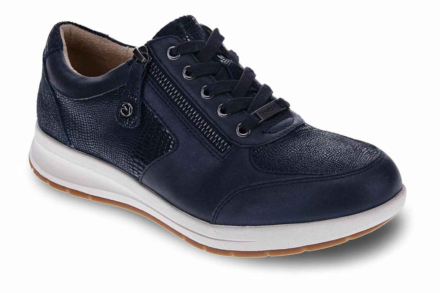 Revere Boston is a fashionable casual sneaker. Prominent features include leather uppers, textile linings, a removable footbed and slip-resistant outsole. A classic lace-up design, side zipper closure, round toe and multi-layer cushioning system will make these sneakers a new favorite.