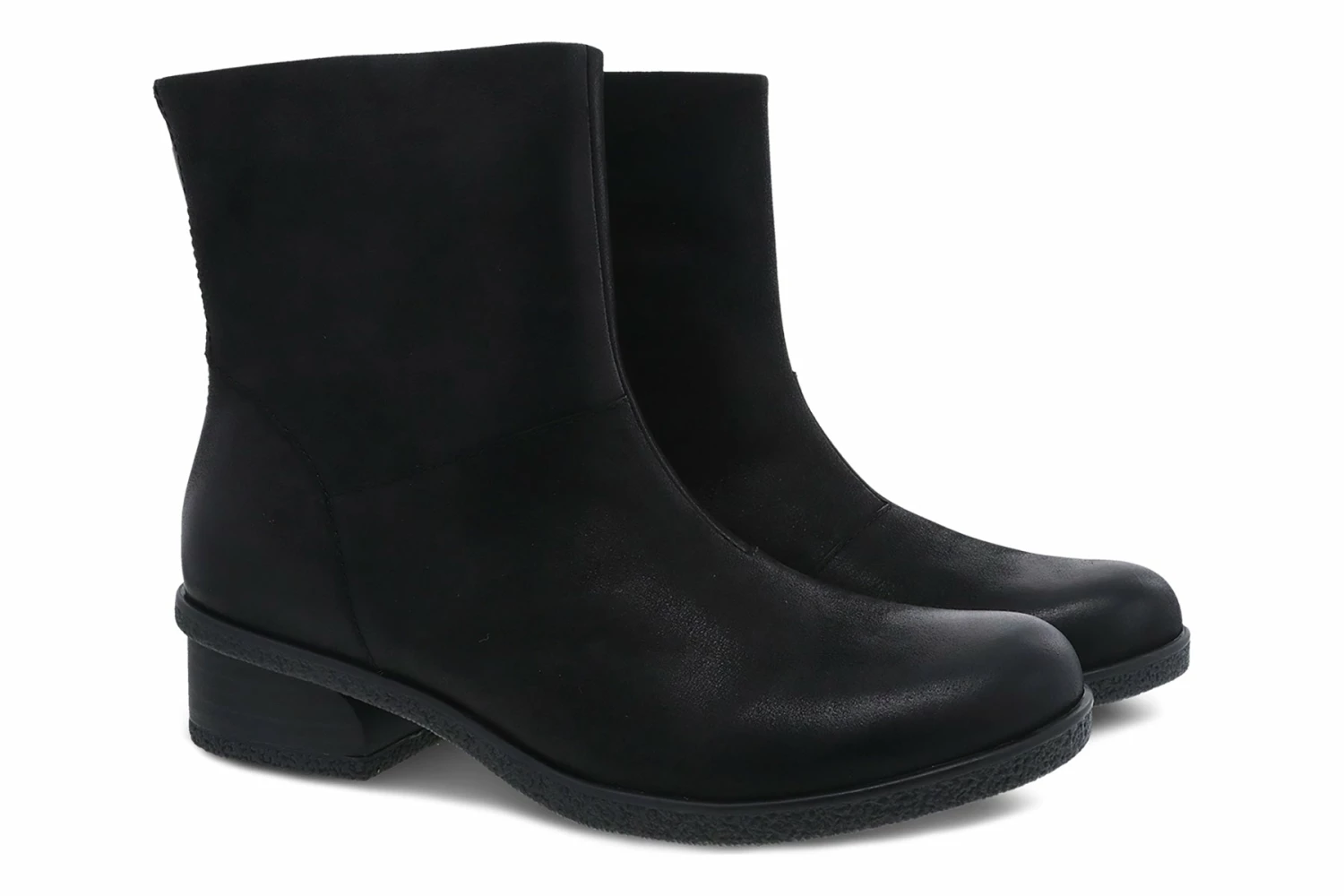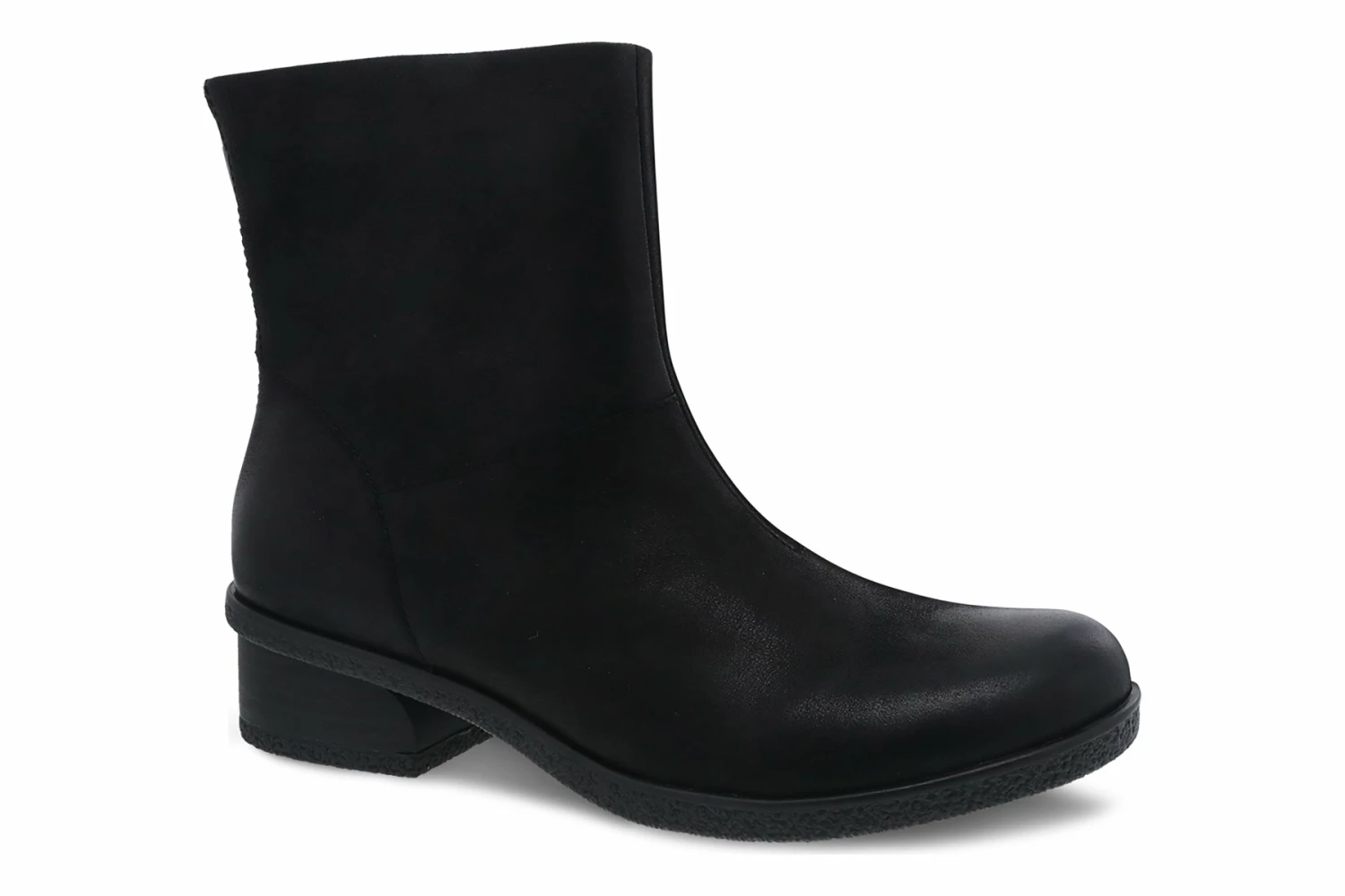 No need to worry about rainy days when you have the Brianne boot! Features include a back zipper for easy on-off, waterproof leathers and waterproof construction and a removable footbed featuringDansko Natural Arch technology.