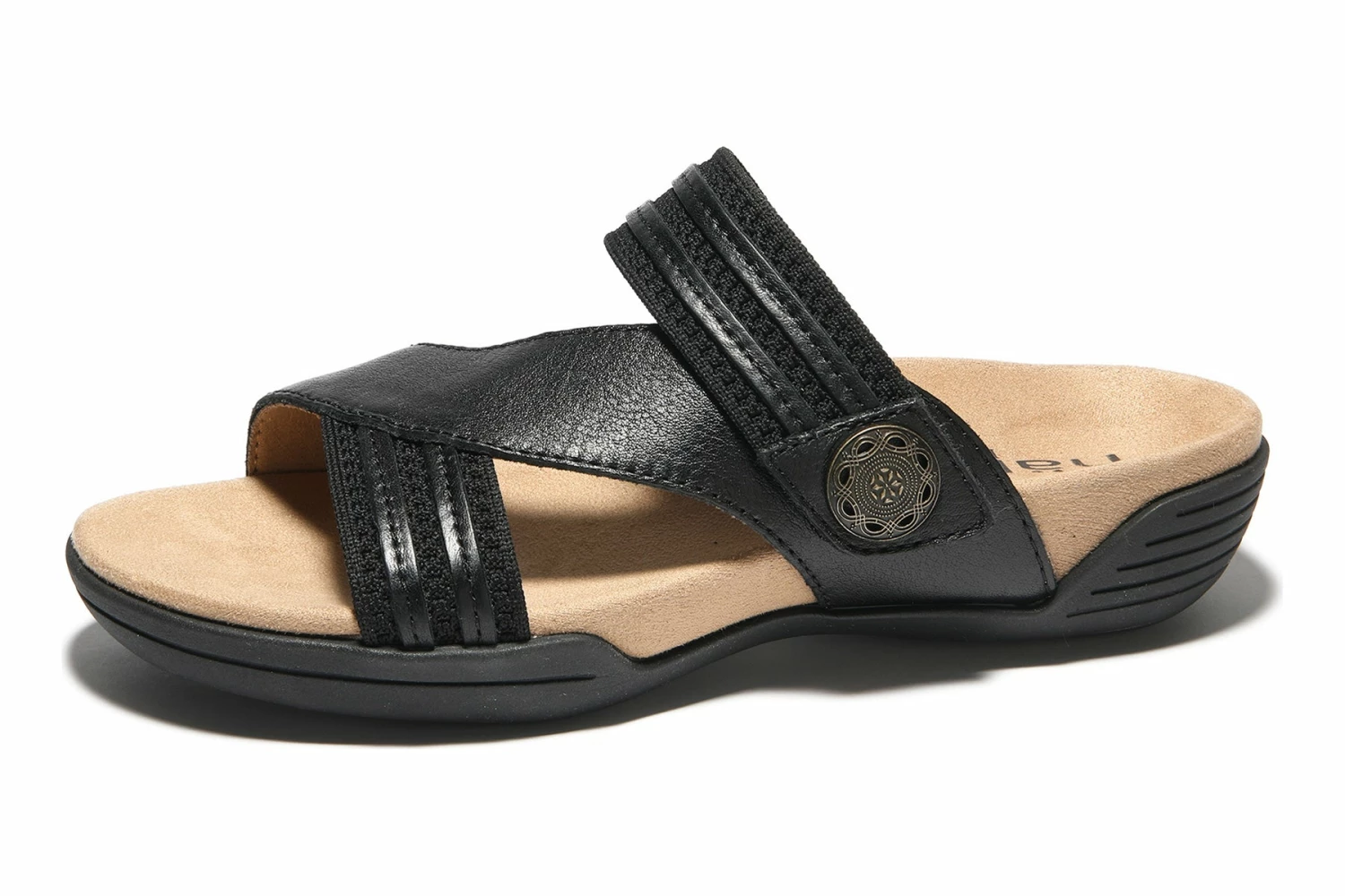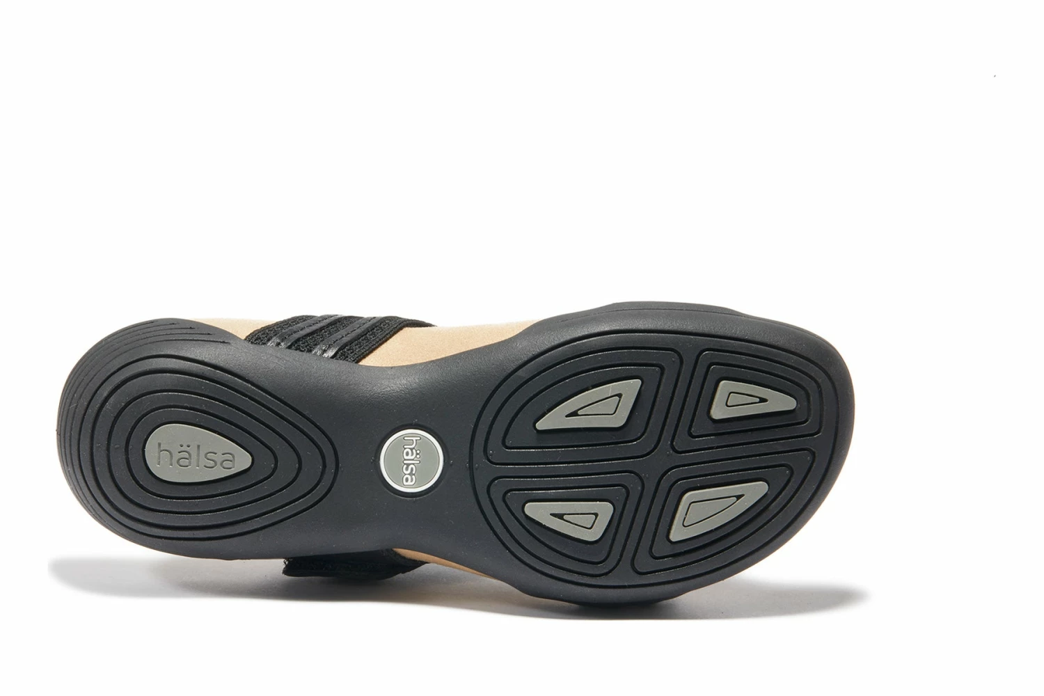 Halsa Footwear Desiree is a fashionable comfort sandal. Features include leather uppers, textile lining, cushioned EVA footbed and rubber and synthetic outsole. A hook and loop closure, lightweight and flexible midsole and metal hardware detailing will make these sandals a new favorite.