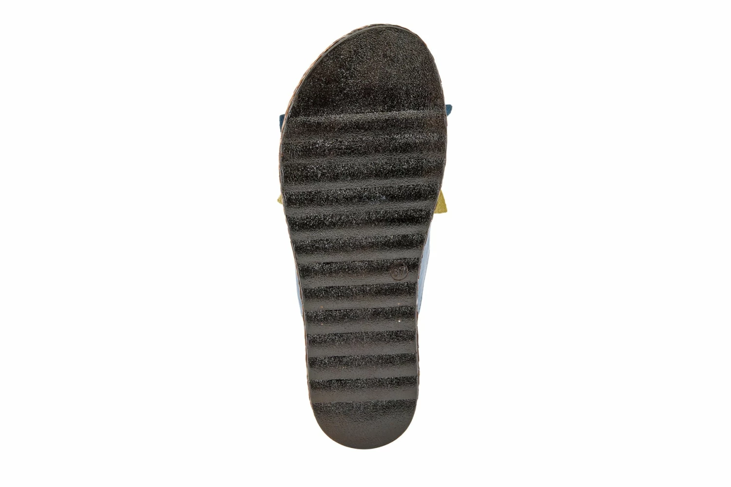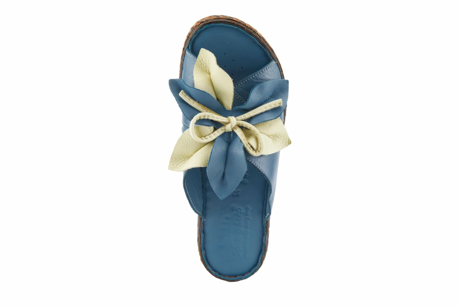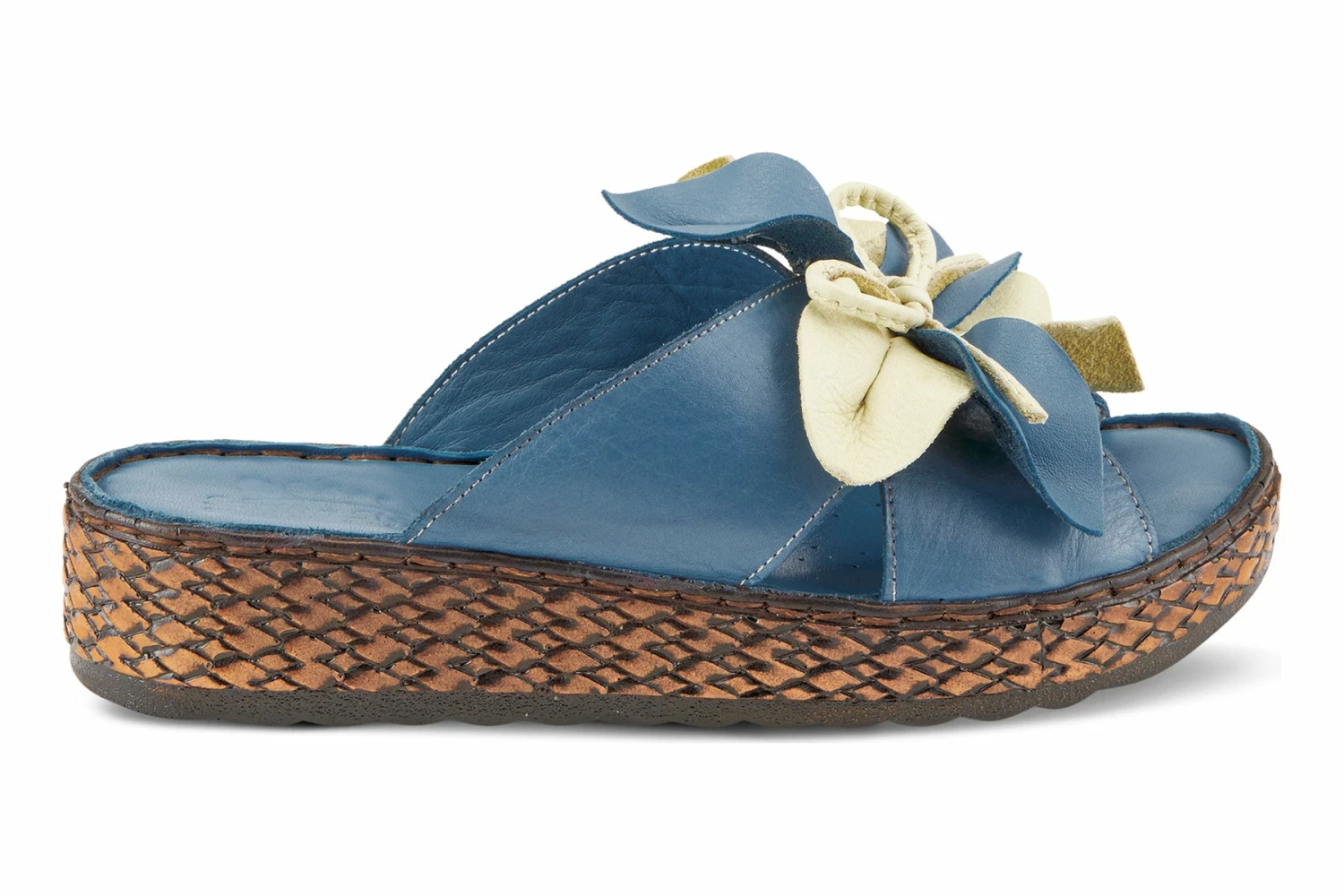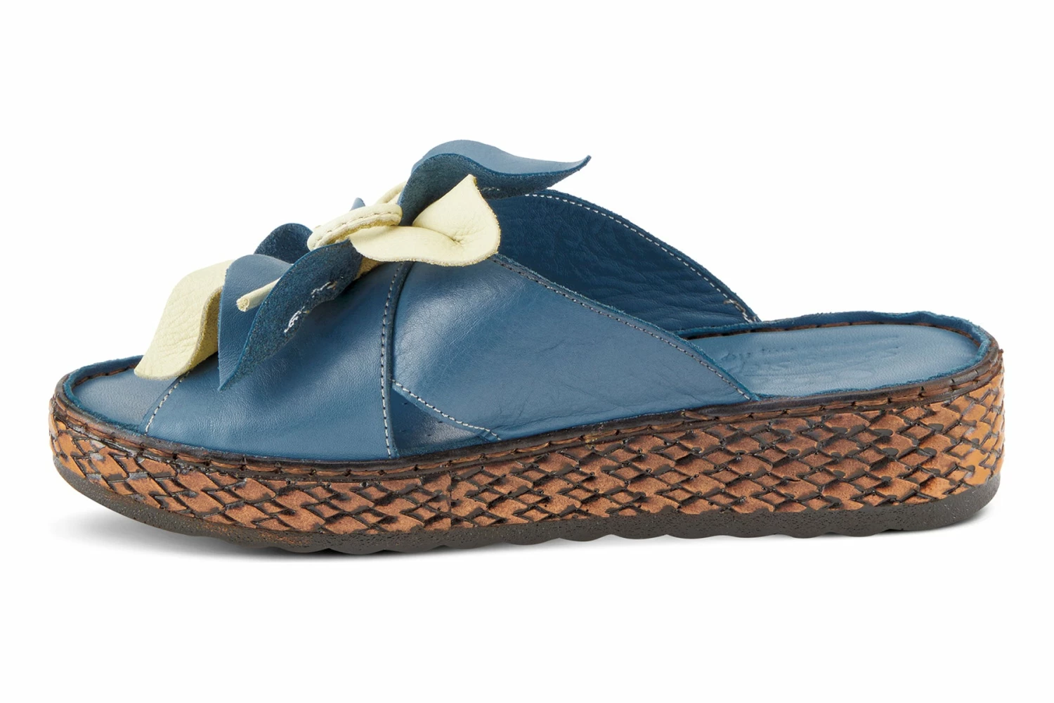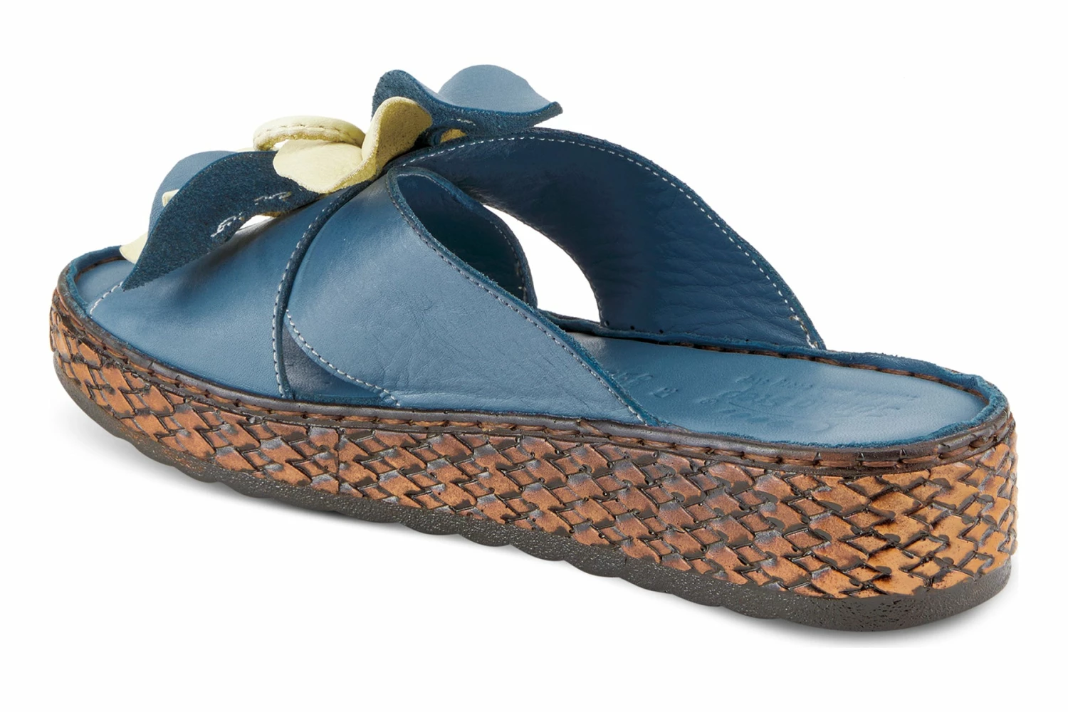 Make a dynamic statement with this whimsical, high quality and butter-soft leather slide sandal featuring a flower applique and padded footbed on a lightweight comfort sole with a flexible forefoot.