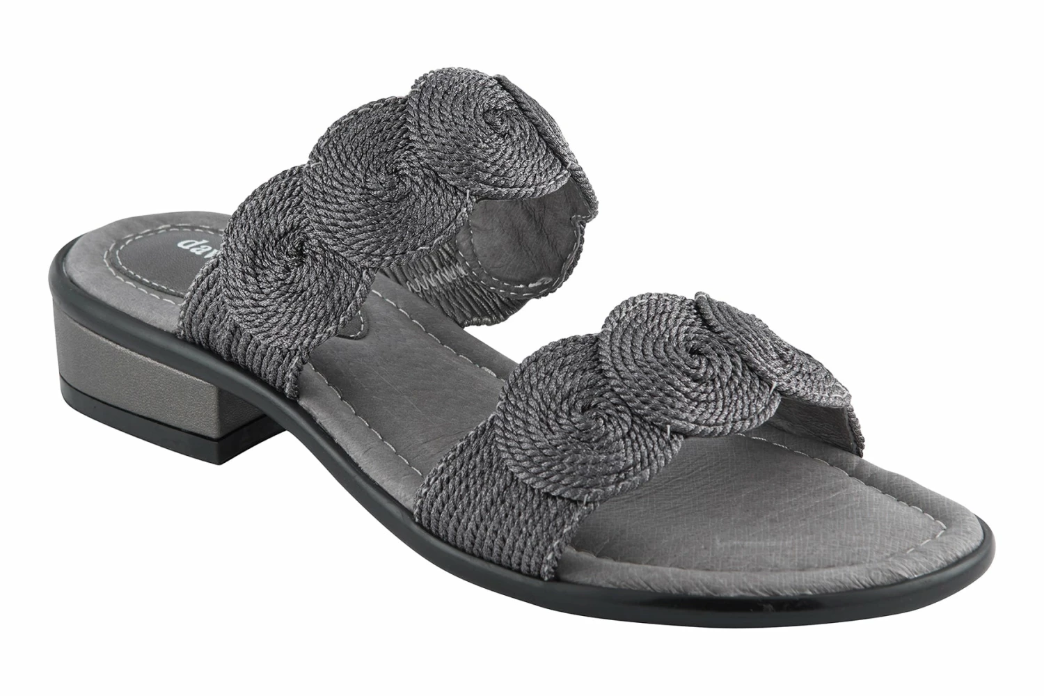 David Tate Honey is a fashionable and comfy women’s sandal. These warm weather shoes have textured rayon fabric uppers, open toe and flexible rubber outsole. A leather lining, elasticized gore detailing and 1 ½ inch block heel makes these sandals stand out.
