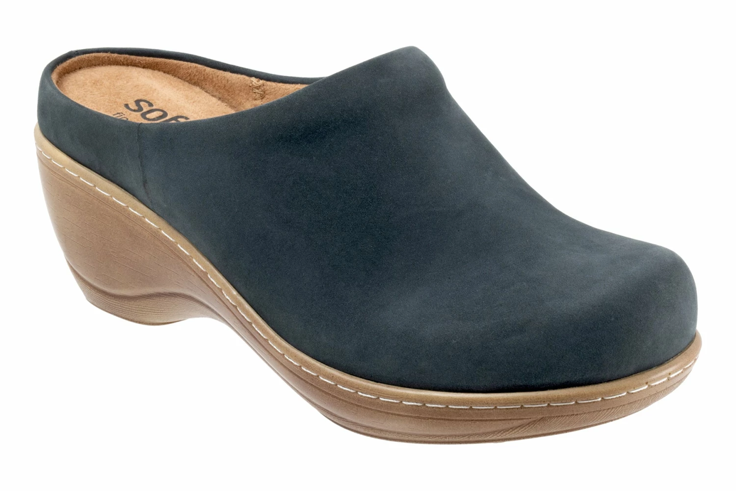 Softwalk Madison is a curvy platform wedge. These clogs have full grain leather uppers, removable footbed, elastic goring and a sturdy rubber outsole. A supportive steel or iron shank, microfiber footbed lining and 2 ¼ inch platform wedge heel will make these clogs a new favorite.