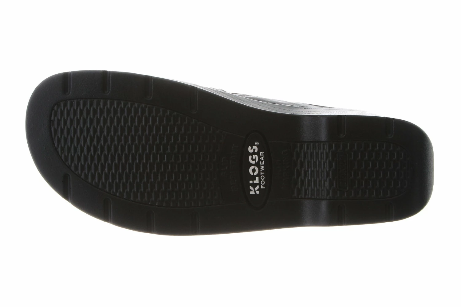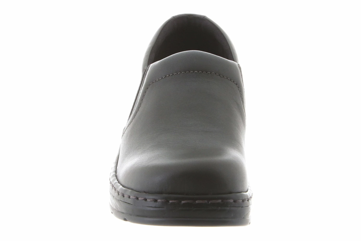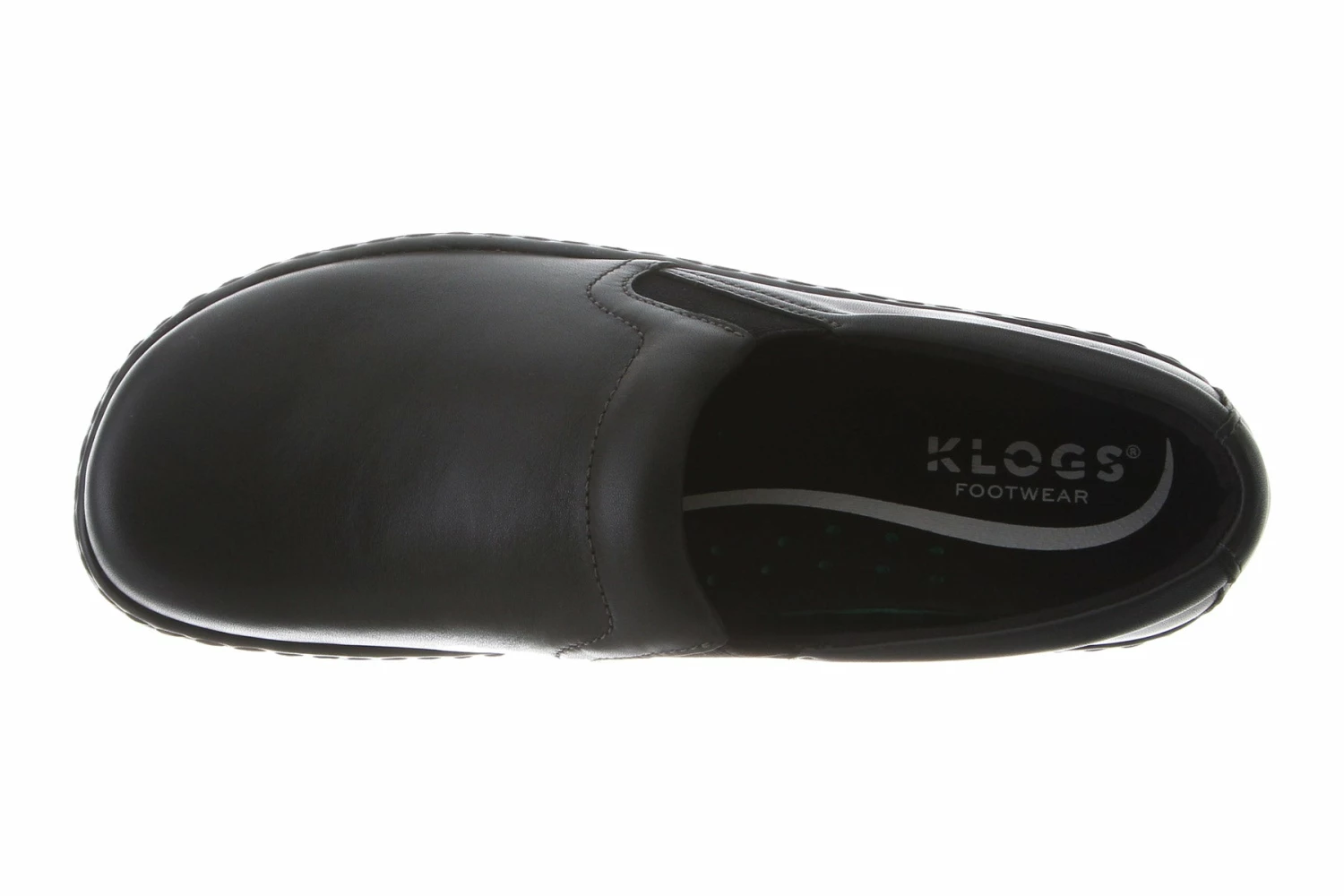 Klogs Footwear Naples women’s clog provides all-day comfort for long hours on your feet. Dual side elastic gore panels help secure the foot in place, while the lightly padded back collar adds support. The removable footbed accommodates custom orthotics for a more personalized fit. The polyurethane outsole is slip-resistant perfect for wet and oily surfaces.