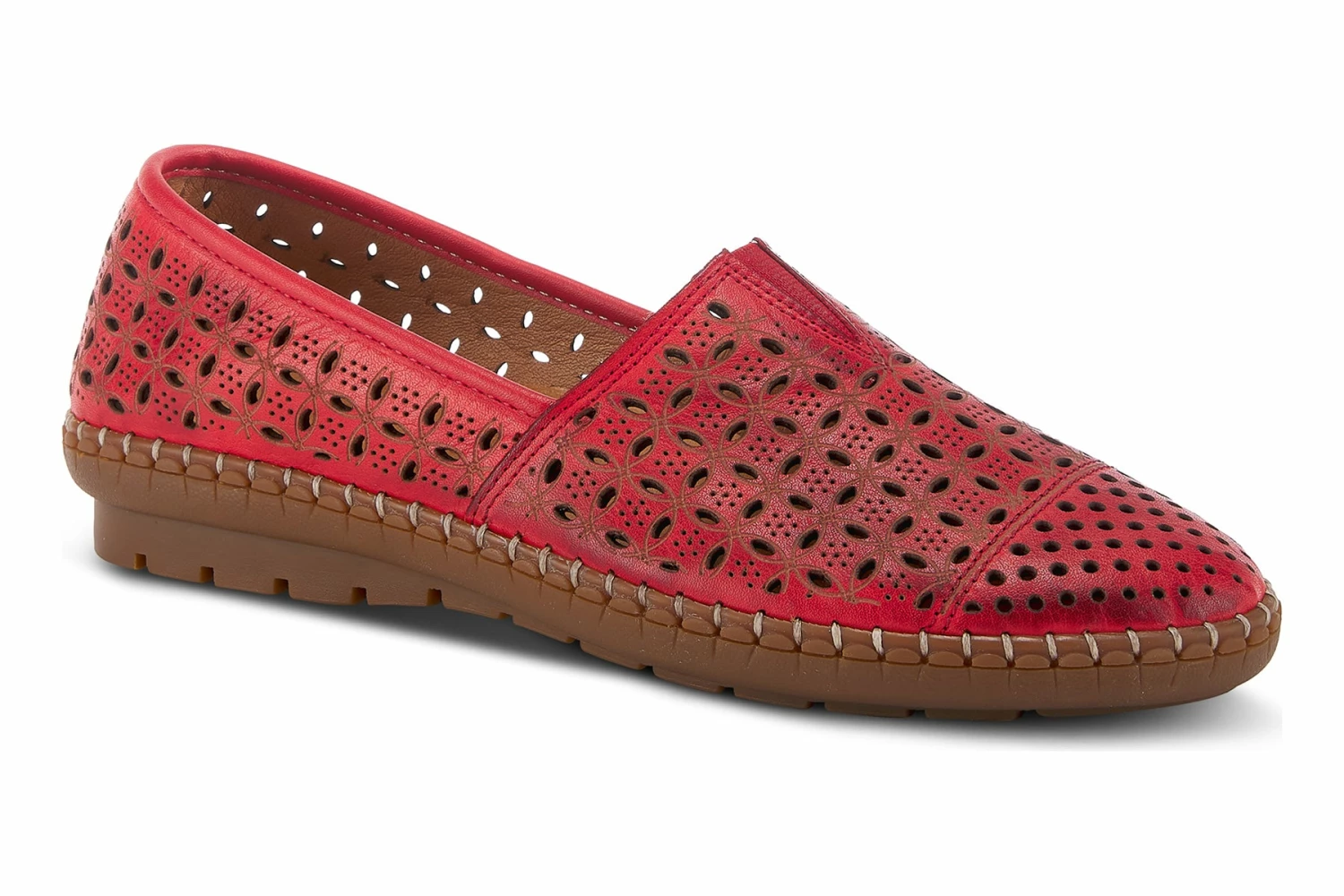 Spring Step Style: Oralis- A trend-right leather slip-on loafer featuring geometric laser cutouts and etching on a flexible yet comfortable sole.