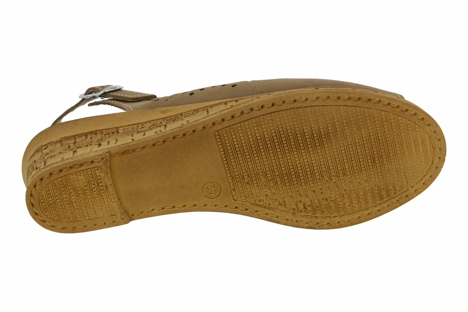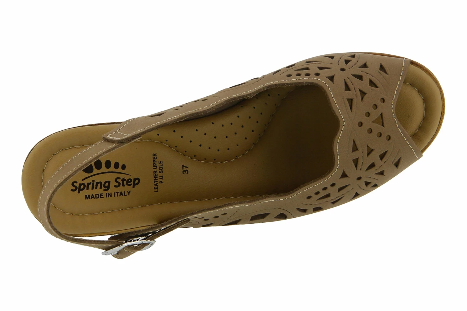 - Genuine Italian leather upper, geometric laser-cut detail, cork-inspired textured wedge.