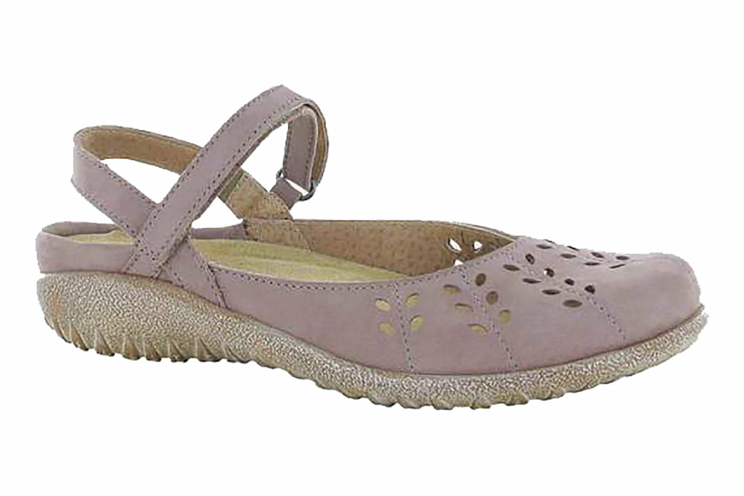 The Rari is offered in soft leather and nubuck with floral inspired cutouts on the upper. A smooth leather lining and a hook and loop backstrap allows for adjustability and comfort. Naot’s removable, anatomic cork & latex footbed is wrapped in pampering suede and molds to the shape of the foot with wear. The Koru Collection features a 1″ polyurethane sole which is extremely lightweight, durable & slip resistant. This collection uses a hand-sewn stroble construction making it strong and extremely flexible.
