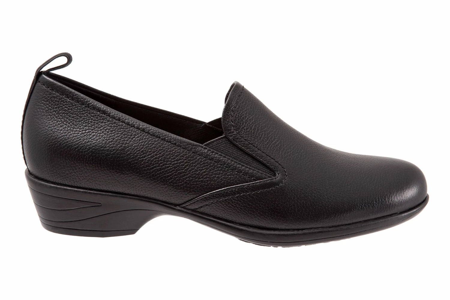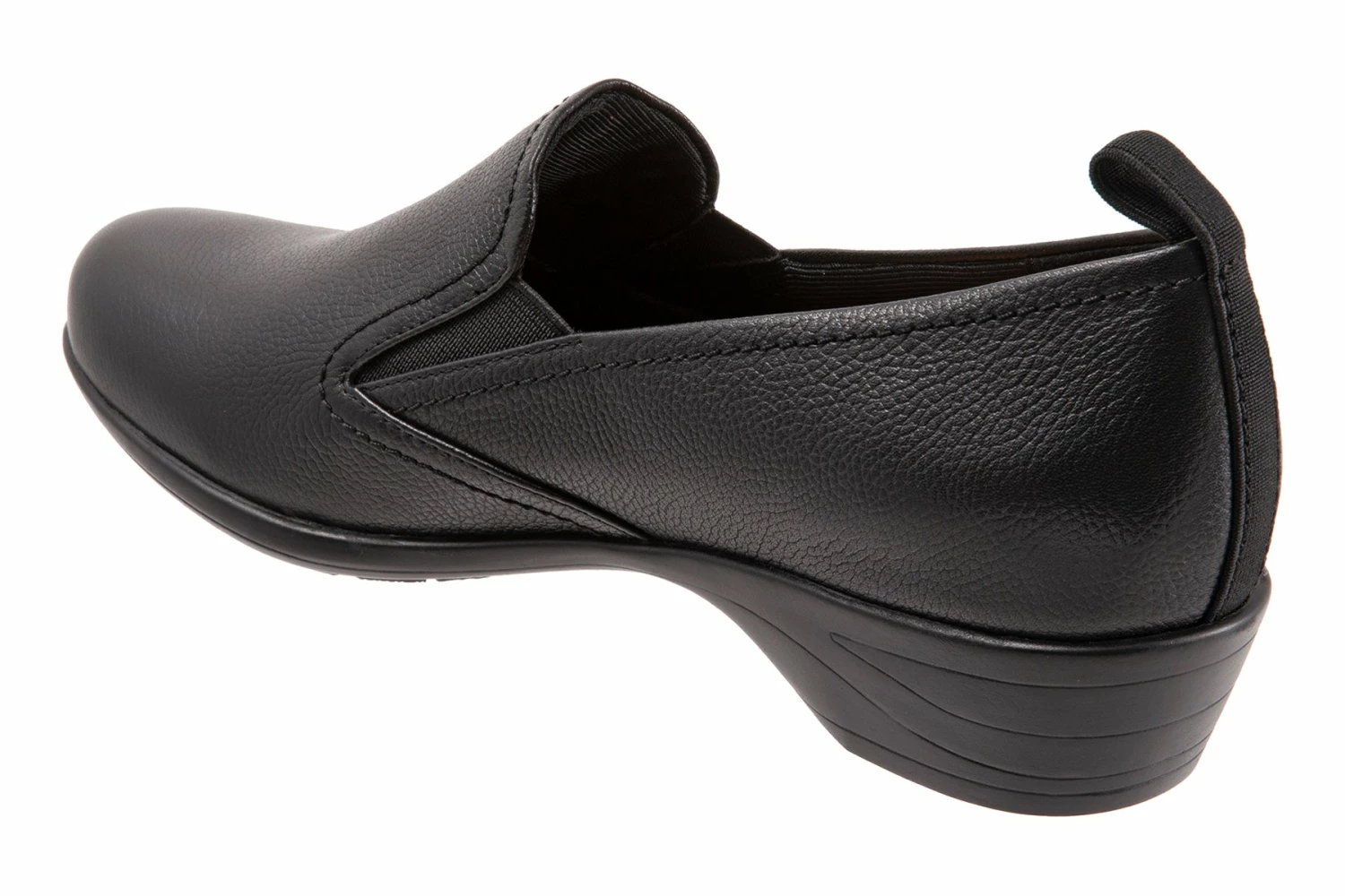 Reggie is a high-throat slip on with dual elastic goring for a clean and comfortable fit. A wonderful stable walking heel is ready for whatever the day has in store.