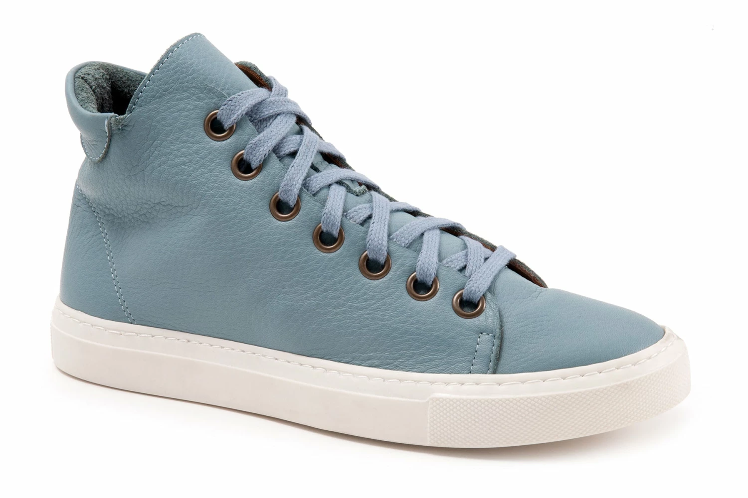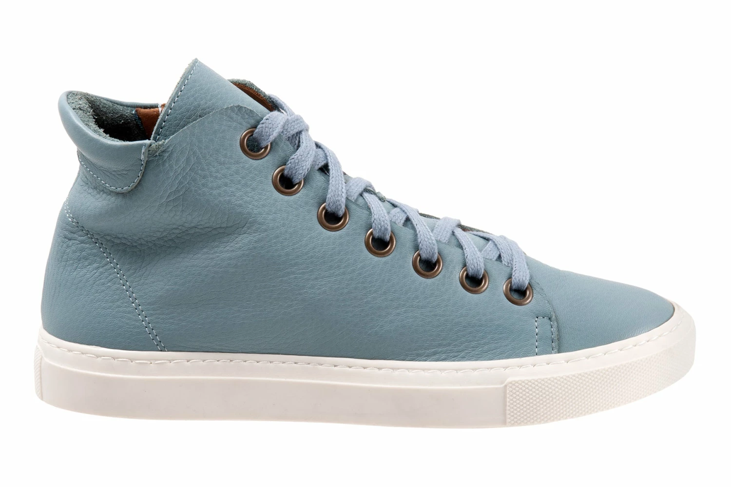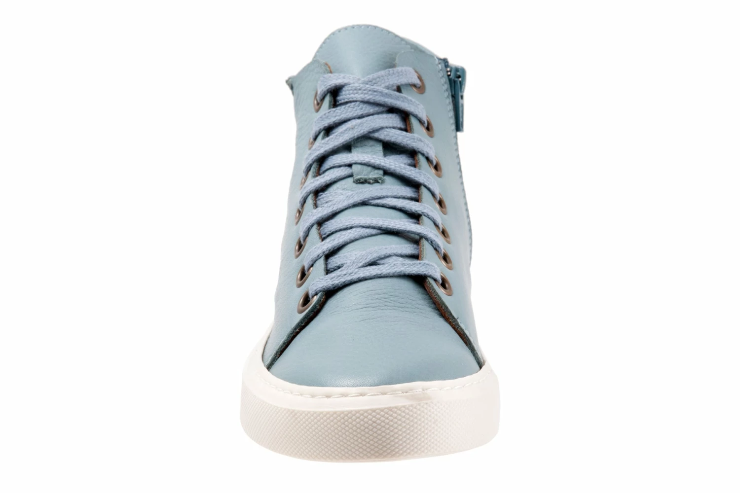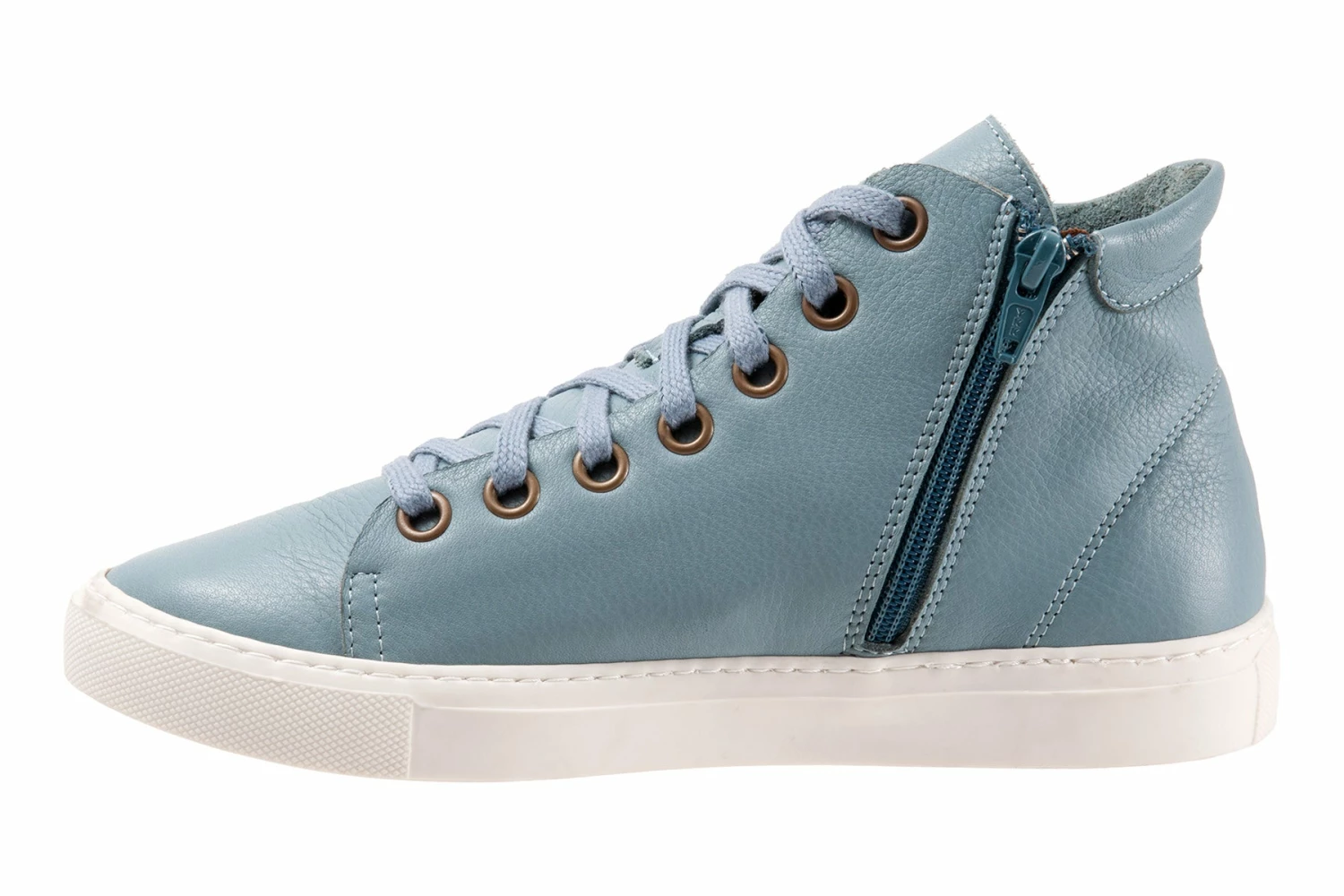 Color matching laces lend a fashionable slant to the Risky high-top sneaker with its easy on/off side zipper.