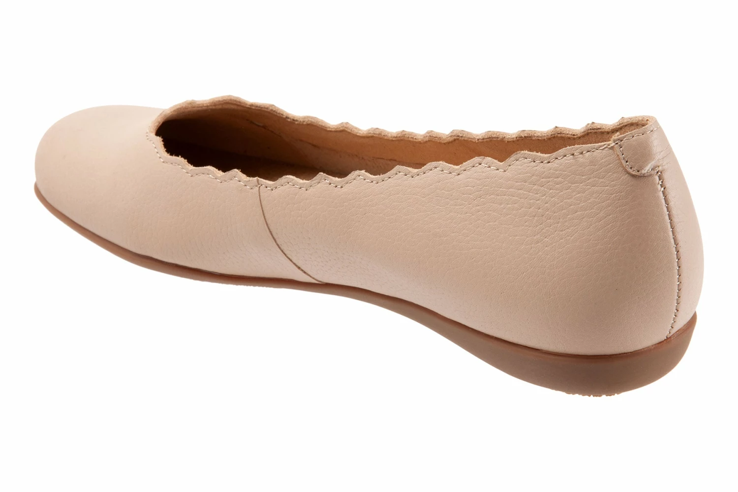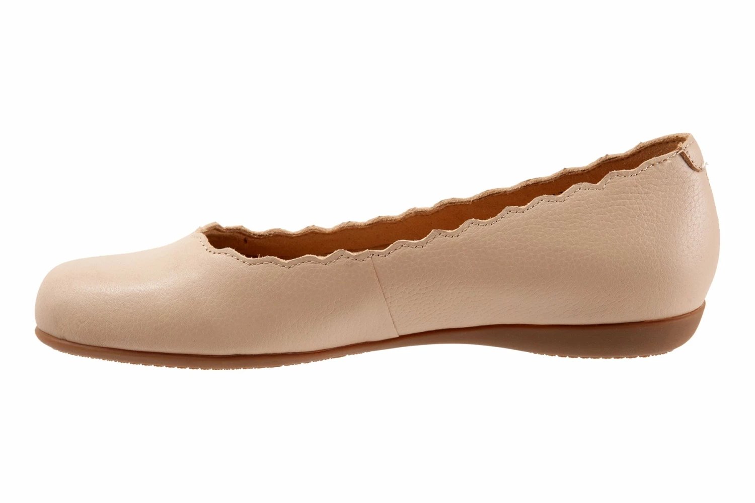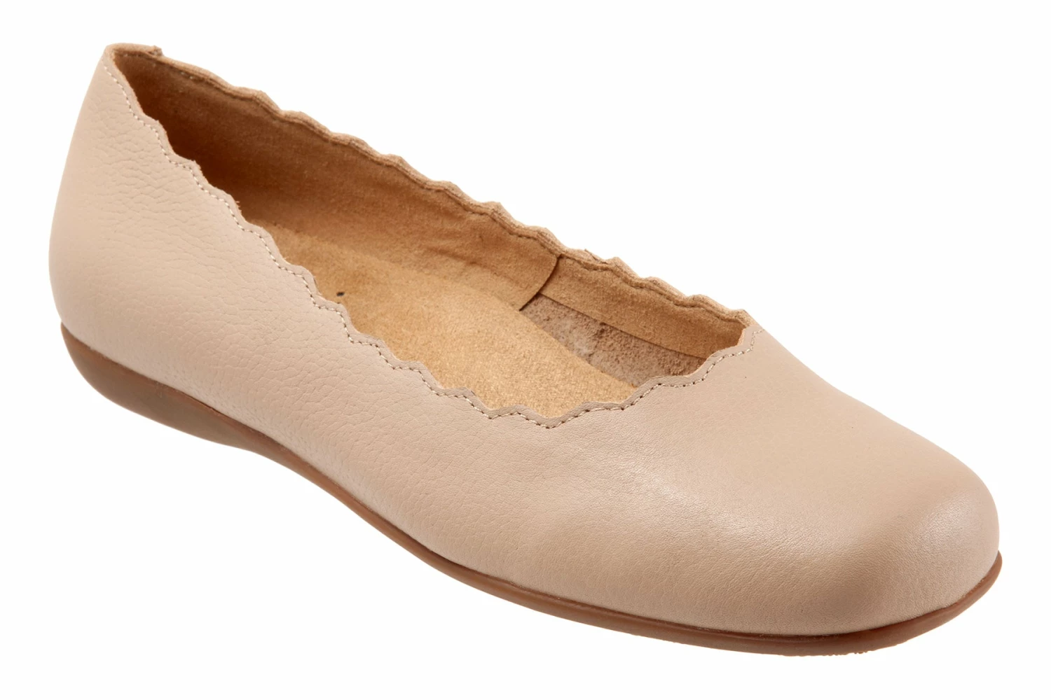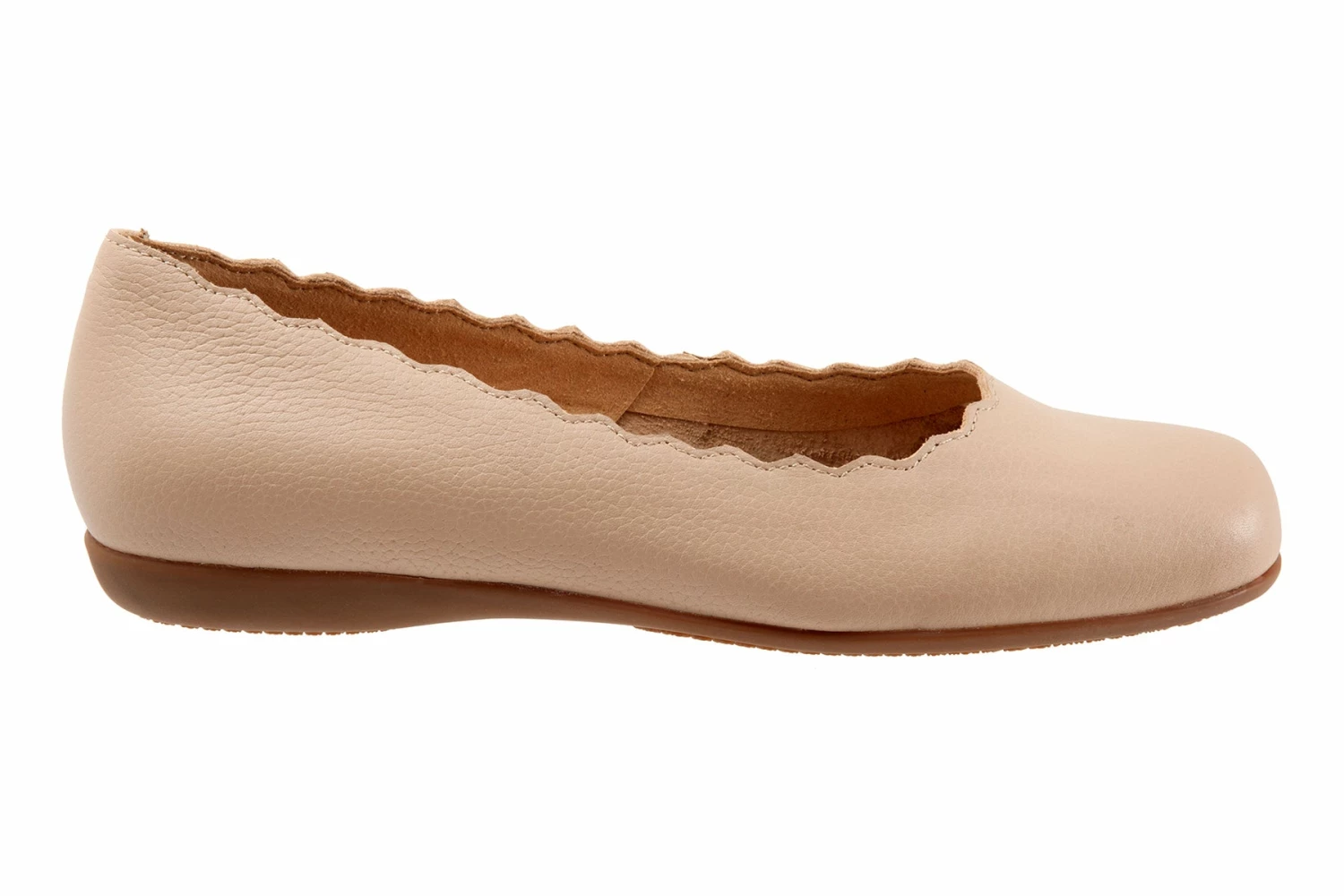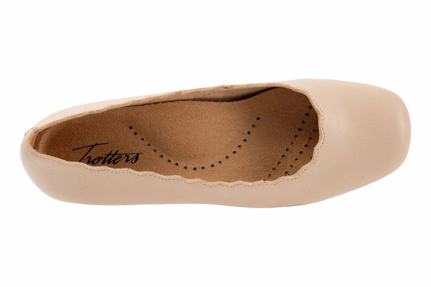 The Sabine flat adds a touch of class with a scalloped edge along the topline. The removable footbed is cushioned and has arch support and the long-wearing sole is a Trotters best seller.