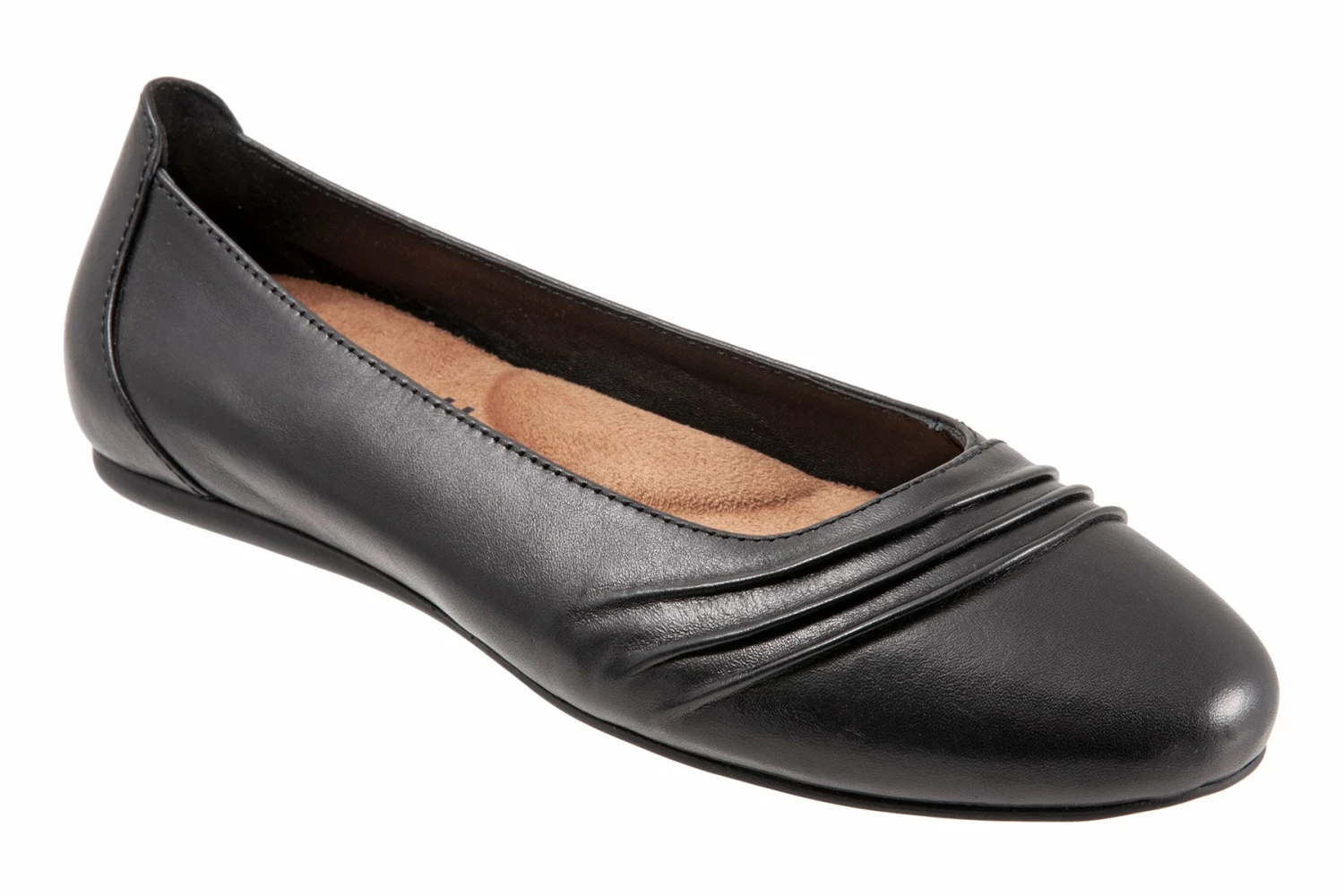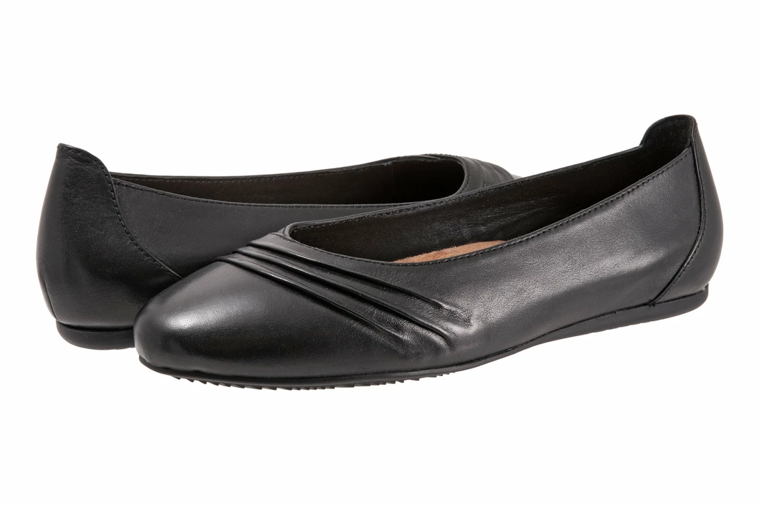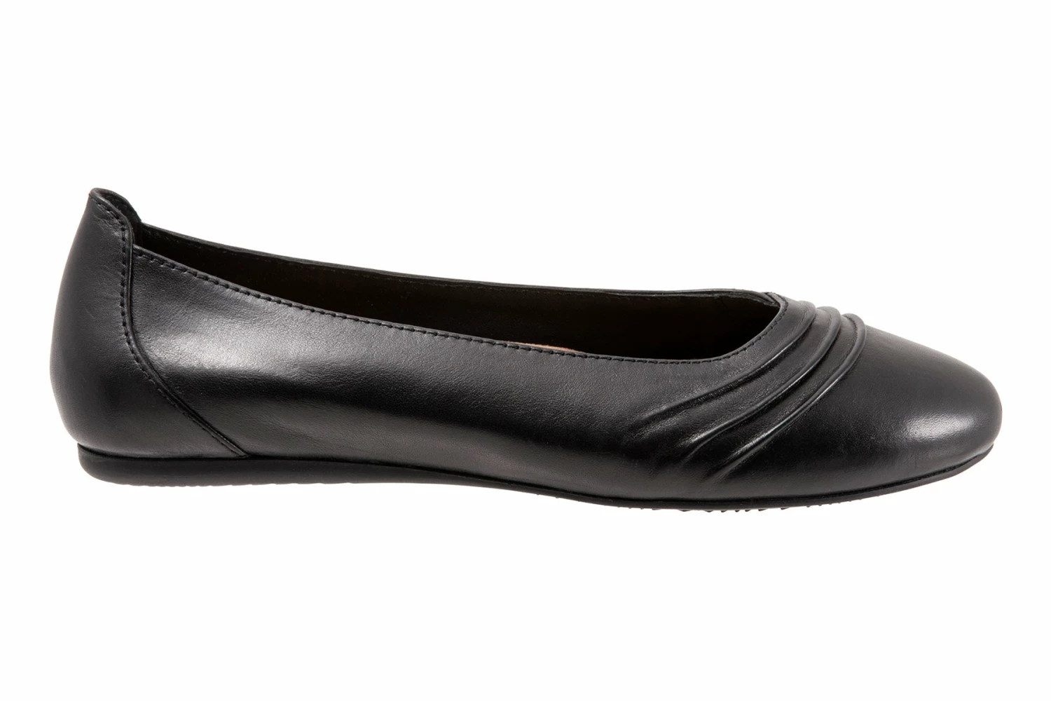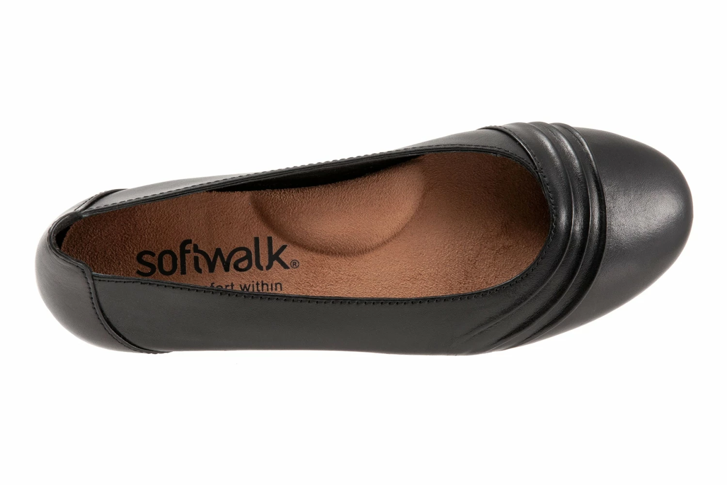 SoftWalk Safi is a modern slip-on ballet flat for any occasion. Ruched detailing, burnished leather uppers and closed, rounded toe elevate these ballet flats. A microfiber footbed lining and molded rubber outsole makes for a comfortable walking flat.