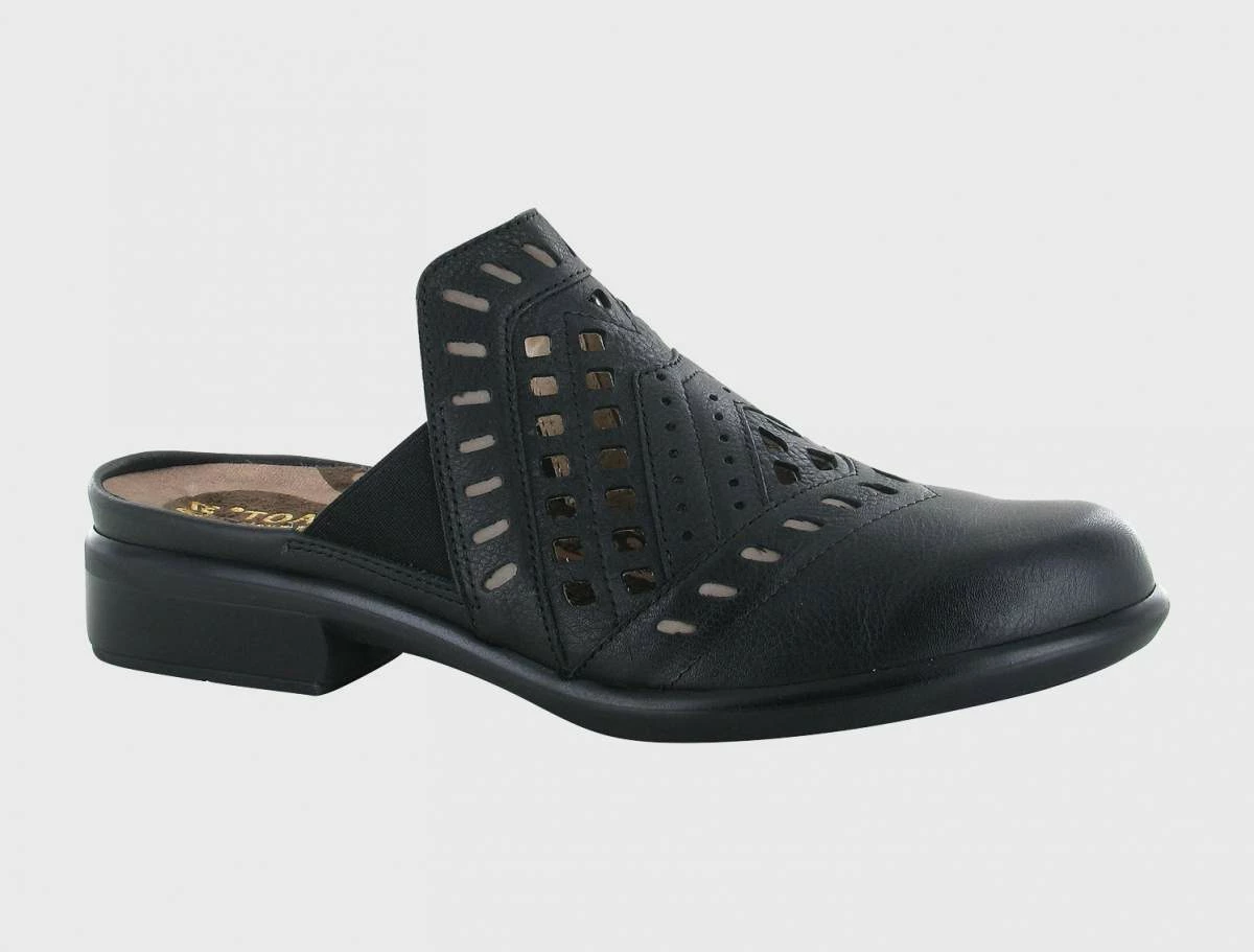 A unique update to a classic, the Sharkia mixes cutouts and perforated leather designs to create a beautiful mule. Naot’s removable, anatomic cork & latex footbed, which is wrapped in microfiber & leather and molds to the shape of the foot with wear. The Aura Collection features a 1.5″ polyurethane sole with a metal shank which is extremely lightweight, durable & abrasive to prevent slipping. This collection uses a hand-sewn stroble construction making it strong and extremely flexible.
