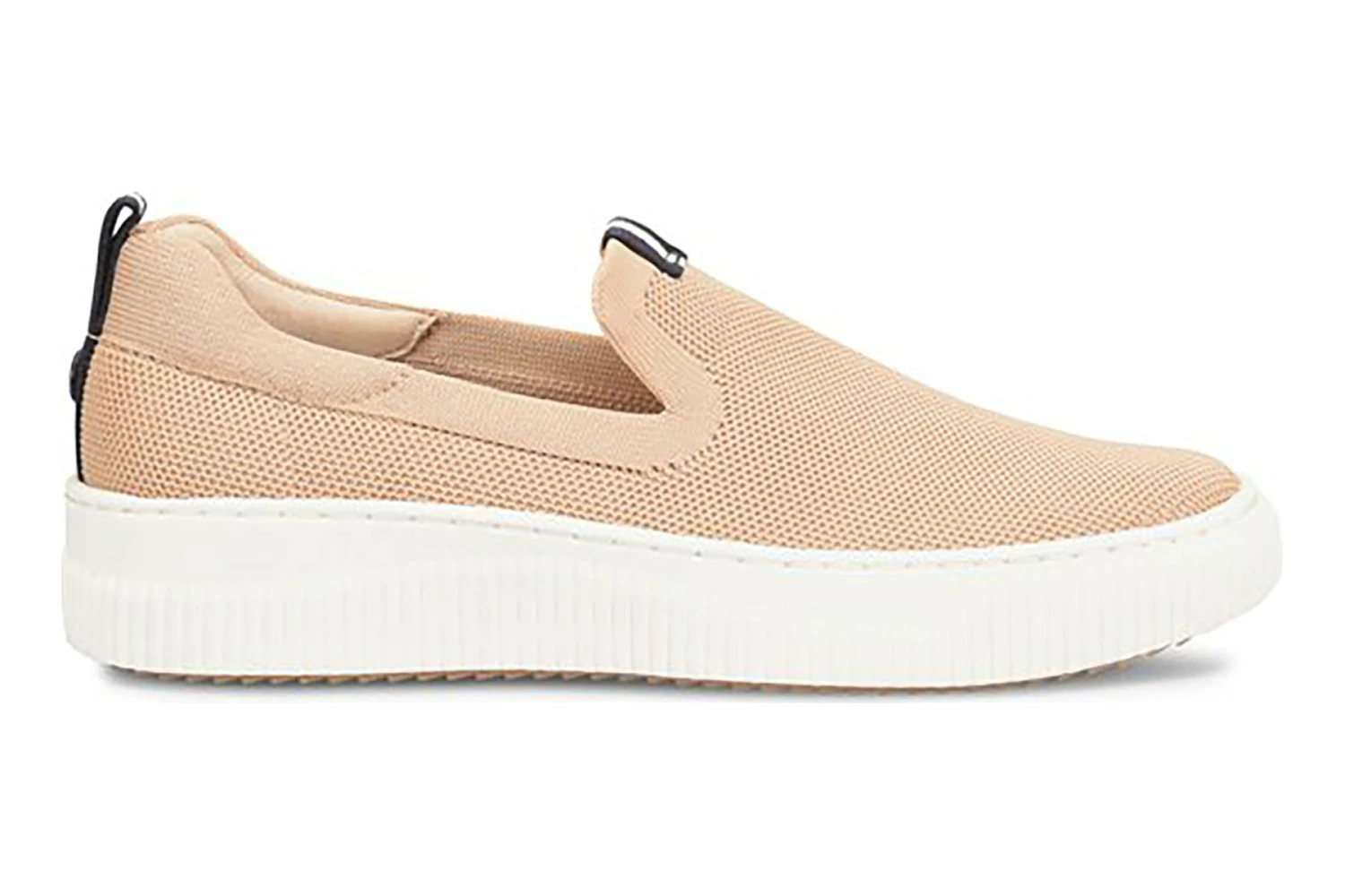 Sofft Frayda is a classic and comfortable slip-on sneaker. These modern and sporty shoes have recycled knit mesh uppers and a lightweight TPR outsole. A padded heel collar, back pull tab and cushioned footbed completes this timeless silhouette.