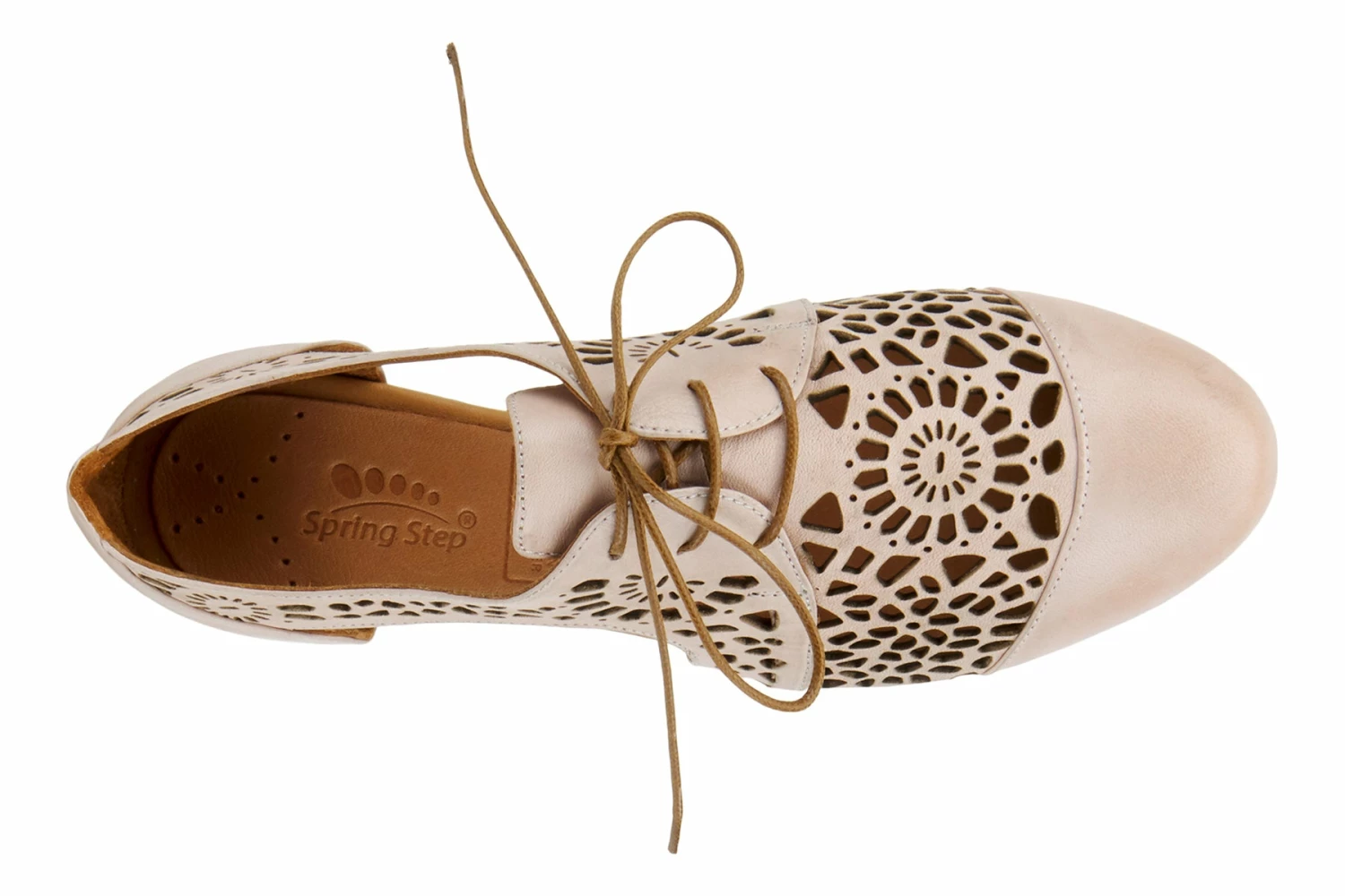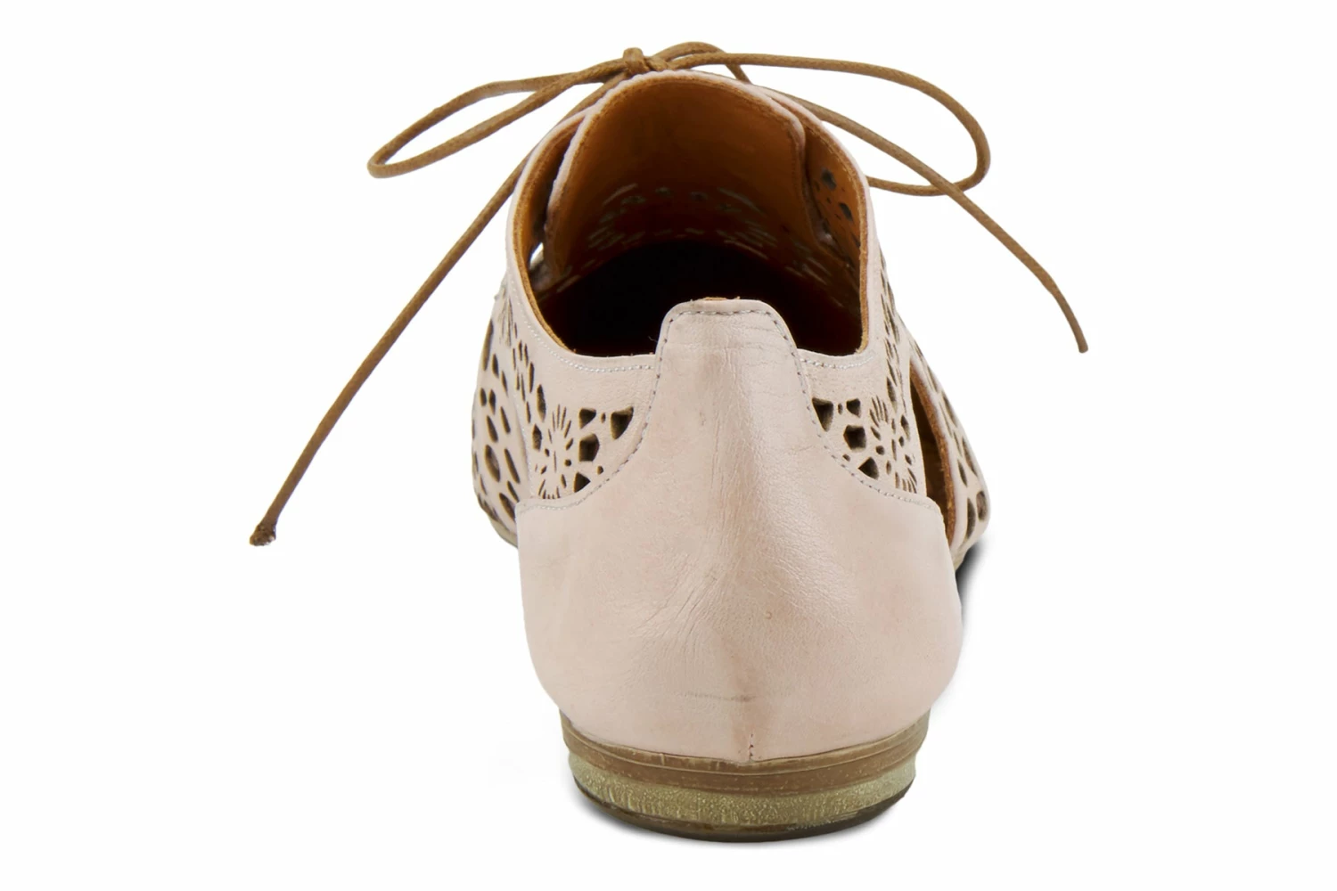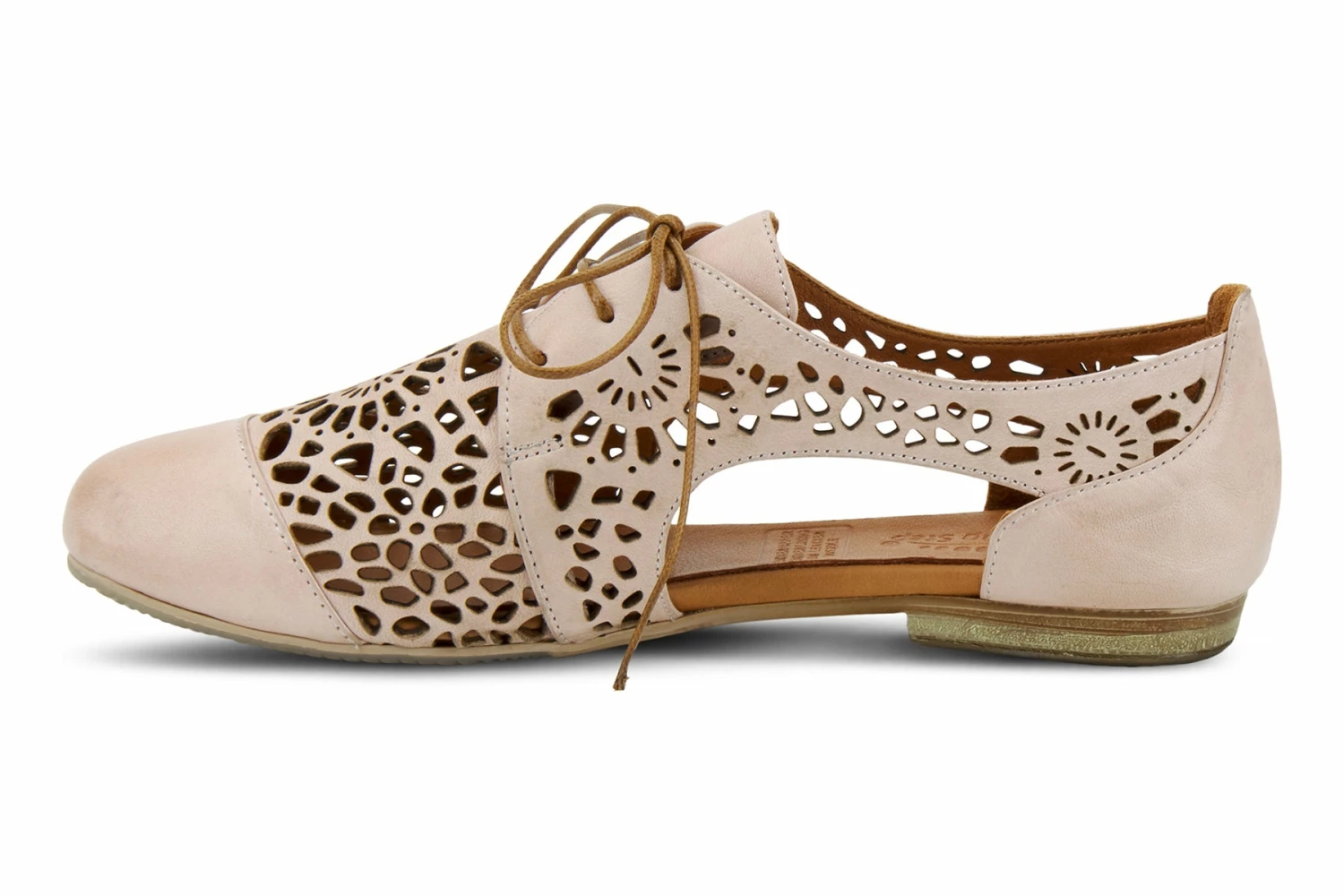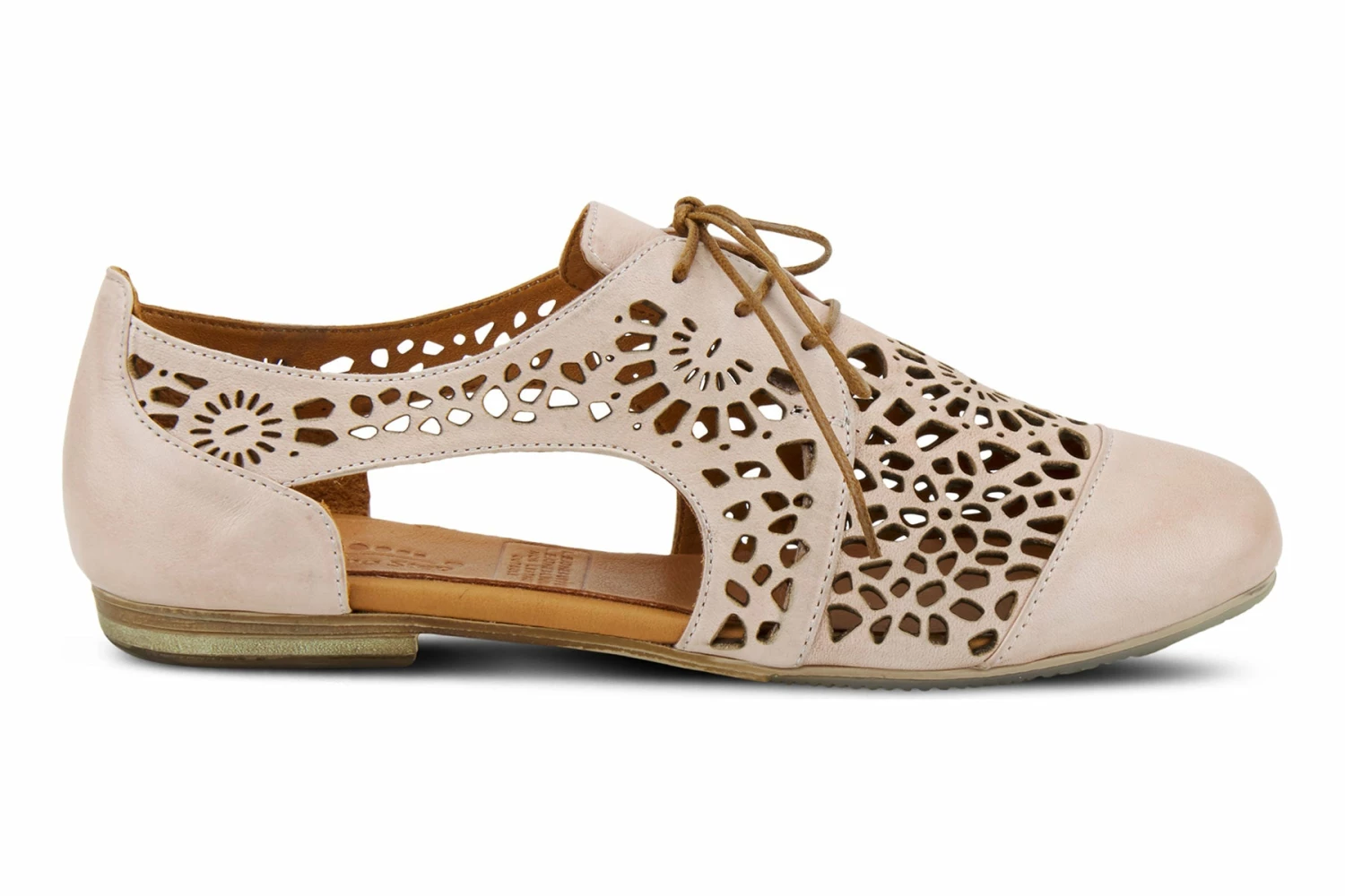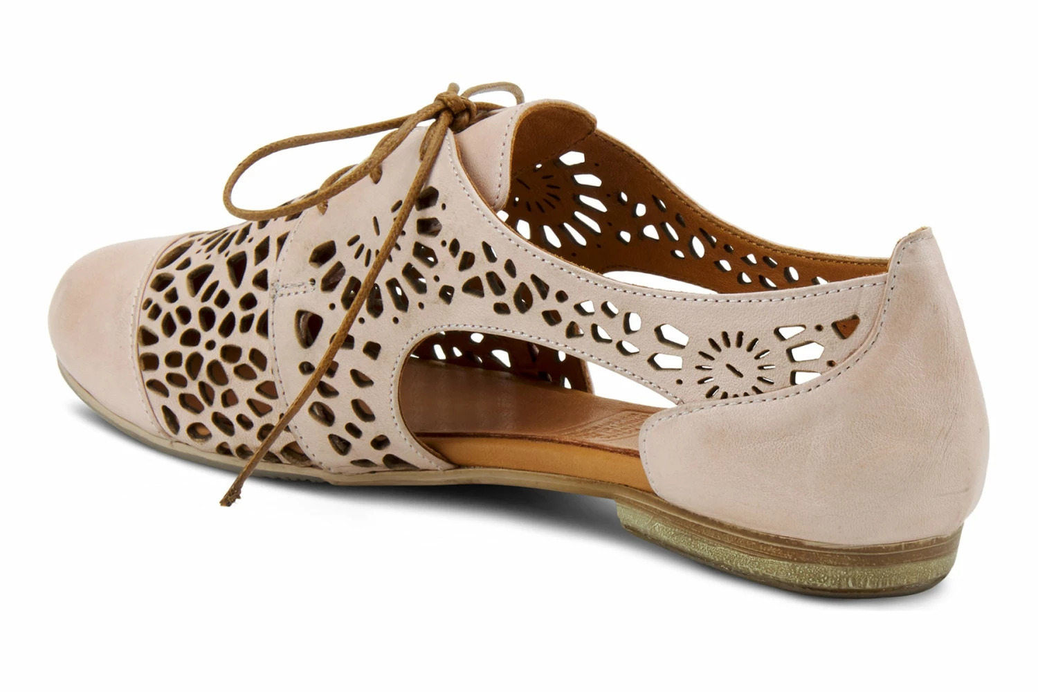 European-influenced, high-quality premium leather derby-style lace-up shoe featuring a beautiful floral geometric laser cutout design for increased breathability and flexibility, a classic cap-toe, and sophisticated tonal stitchwork all on a slim-profile, sculpted, comfort flat with a flexible forefoot.