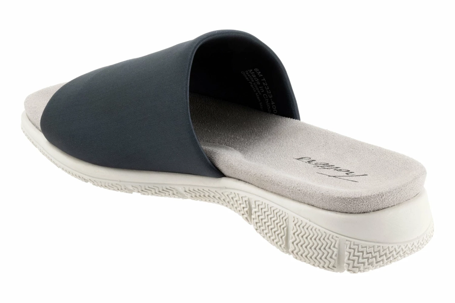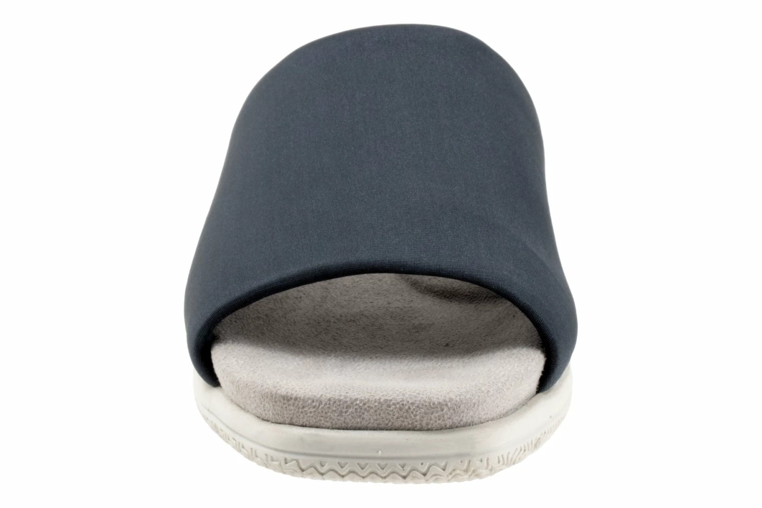 The Toni is a wide thick upper band slip-on sandal. Toni also features a cushioned footbed and a lightweight sporty sole.