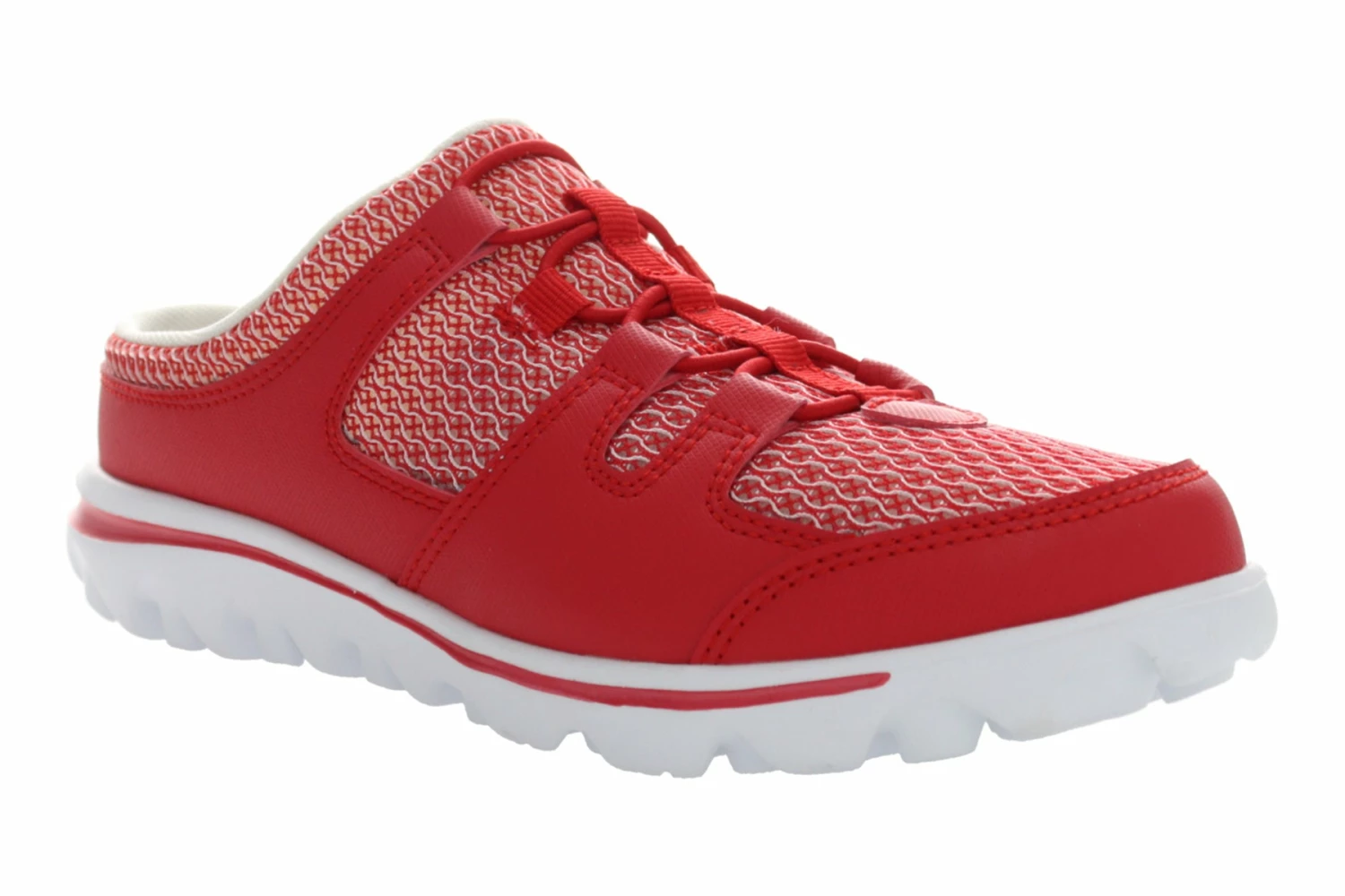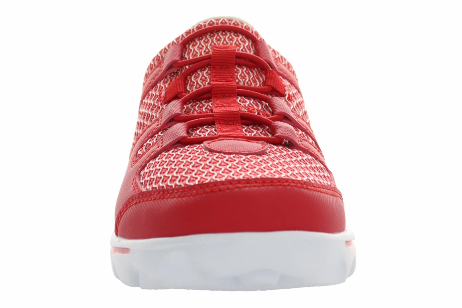 Enjoy lightweight comfort and sporty style in the women’s Propet TravelActiv Slide. The mesh upper and lining offer moisture-wicking, breathable comfort. The removable EVA footbed accommodates custom orthotics, while the EVA outsole provides traction and durability.