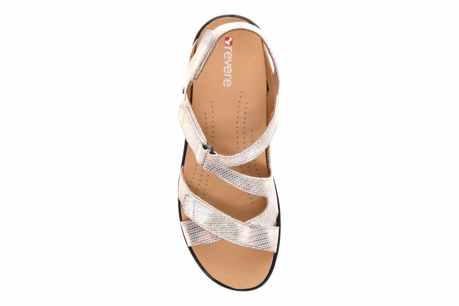 Revere Zanzibar is a trendy warm weather sandal. These sophisticated sandals have leather uppers and linings, a synthetic insole and lightweight rubber outsole. Adjustable straps, a round open toe and a contoured microfiber covered footbed helps these summer shoes stand out.